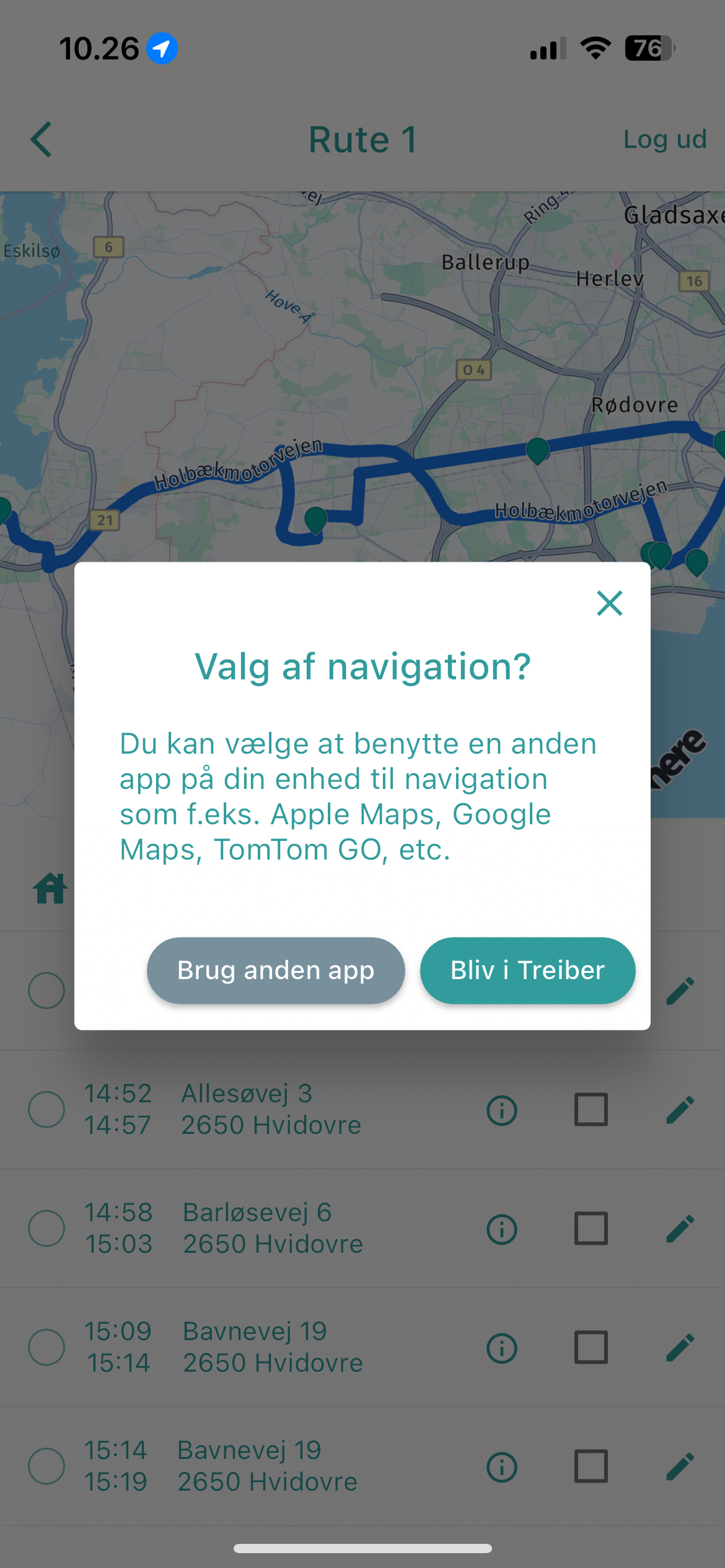 Giv dine chauffører den bedste oplevelse med alt samlet i én app. Dine chauffører har mulighed for at vælge den navigation, de foretrækker. Det eneste krav er, at den ønskede navigationsmulighed er installeret på deres mobil.